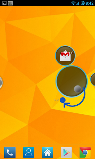 circle launcher -> circle swipe to outside -> wait a second release -> fullscreen-begin of app;